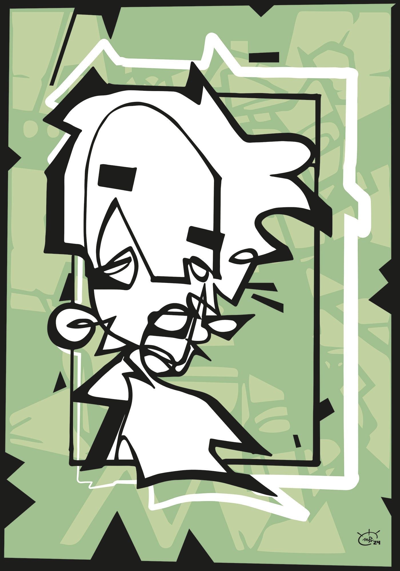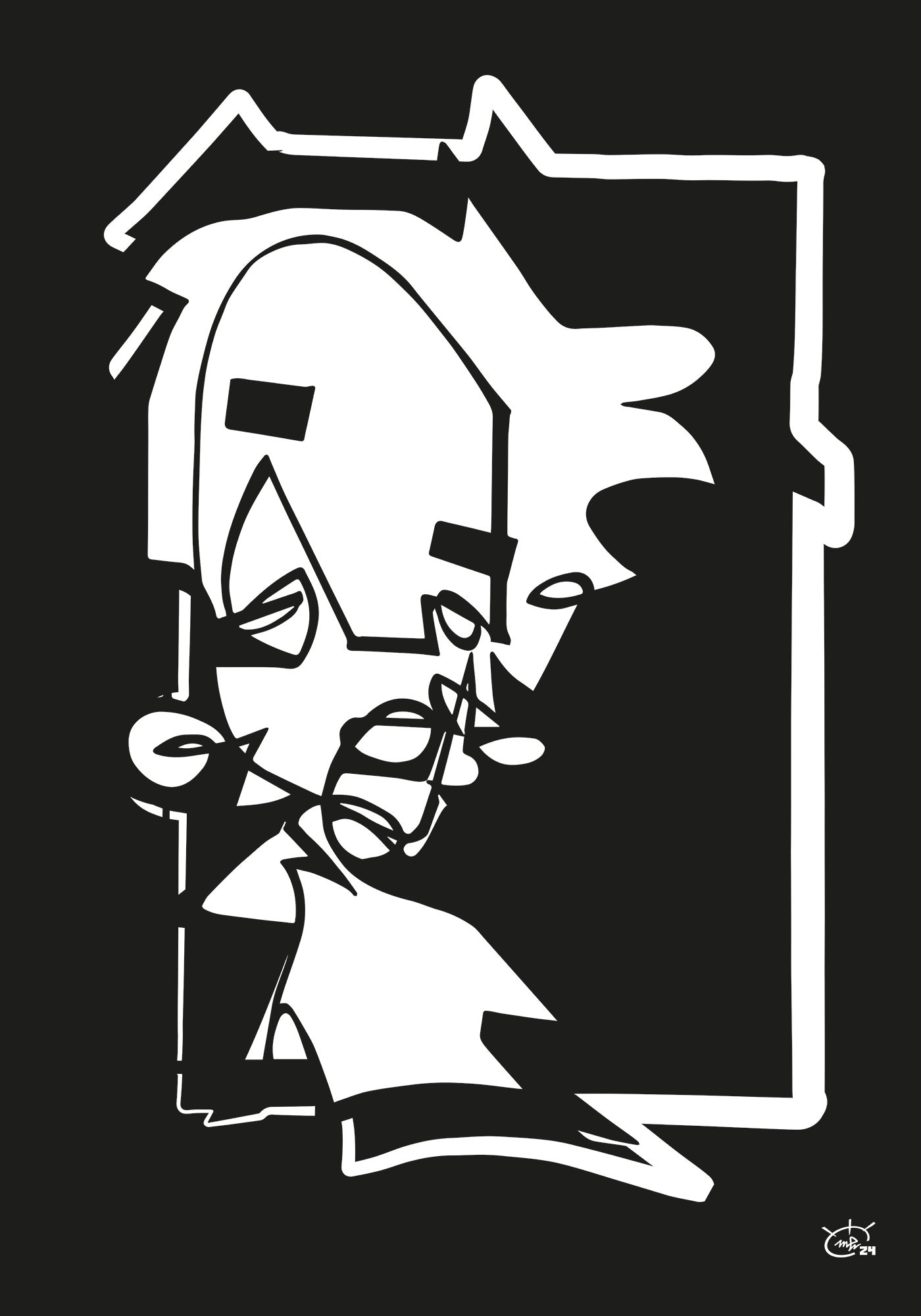 MISS HOLLE von Markus Haertel interpretiert die ikonische Figur der deutschen Folklore in einem markanten, minimalistischen Stil neu. Mit seiner charakteristischen Einlinientechnik fängt Haertel die Essenz von Fräulein Holle ein und verbindet traditionelles Geschichtenerzählen mit zeitgenössischer abstrakter Kunst.